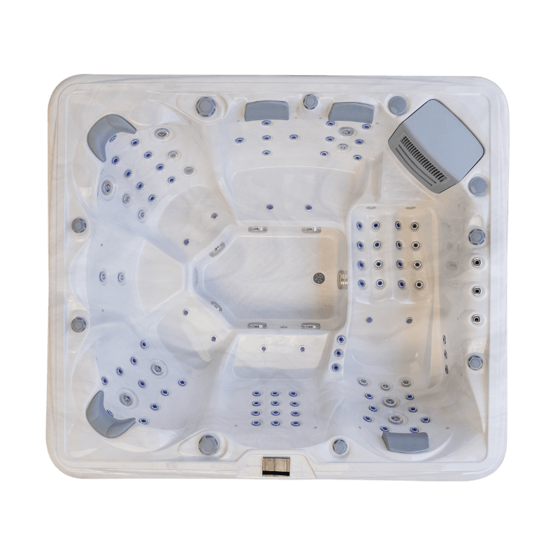 The Ocean Monarch Elite is a spacious, high-capacity hot tub crafted for group relaxation and performance hydrotherapy. Measuring 2500mm x 2200mm x 950mm and seating up to eight (including one lounger), it features 99 light-up jets—ranging from precision 1″ jets to powerful 3.5″ rotational and directional jets—designed to deliver a full-body massage experience. Specialised neck and shoulder jets and three LED-lit fountains enhance therapeutic value and ambiance. The USA Aristech Acrylic shell ensures a premium look and lasting durability.