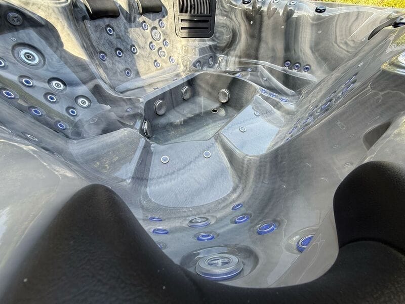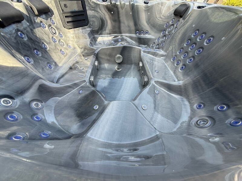 This hot tub includes air blowers – dedicated fans that push air through tiny ports around the seats. Instead of blasting water like hydro jets, they send air only, creating a gentle, fizzy “champagne bubble” sensation that lifts the body and helps you unwind. It’s perfect for a relaxed, social soak or for softening the muscles before you turn the hydro jets up for a deeper massage.