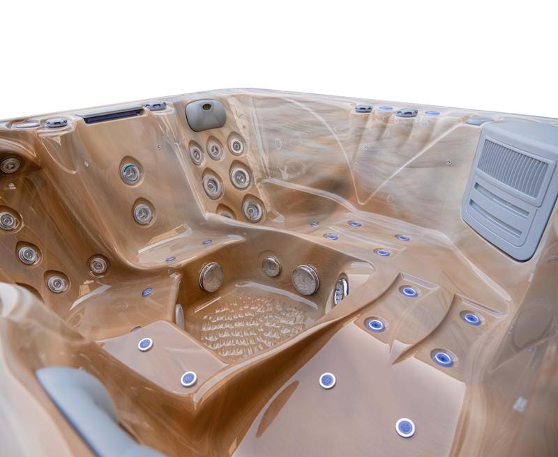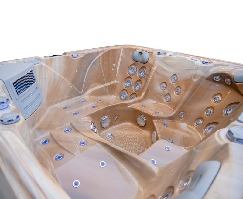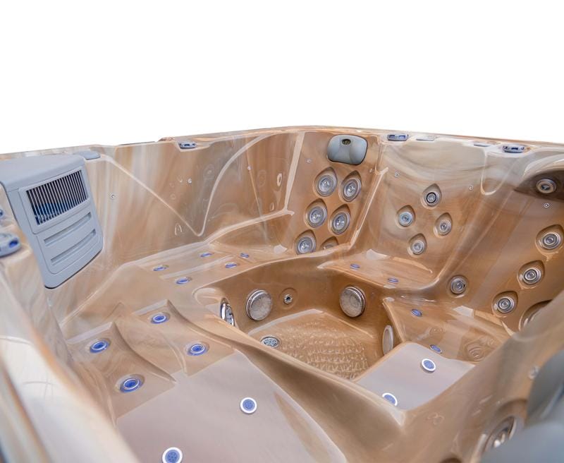 This hot tub includes air blowers – dedicated fans that push air through tiny ports around the seats. Instead of blasting water like hydro jets, they send air only, creating a gentle, fizzy “champagne bubble” sensation that lifts the body and helps you unwind. It’s perfect for a relaxed, social soak or for softening the muscles before you turn the hydro jets up for a deeper massage.