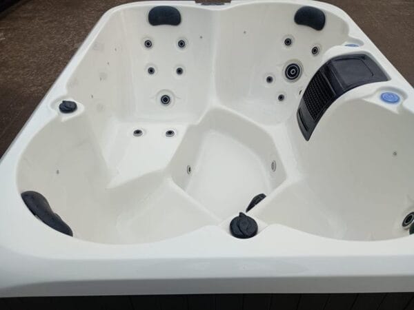 Controlled effortlessly via the advanced Canadian Gecko™ control system, the Tranquil Tide Spa combines intuitive operation with luxurious features. Integrated Bluetooth speakers let you unwind with your favourite music or podcast, while 20 high-quality hydrotherapy jets and an underwater light enhance the sensory experience. Designed for everyday comfort, the spa includes four cushioned pillows for added support, making it an inviting retreat for any time of day.